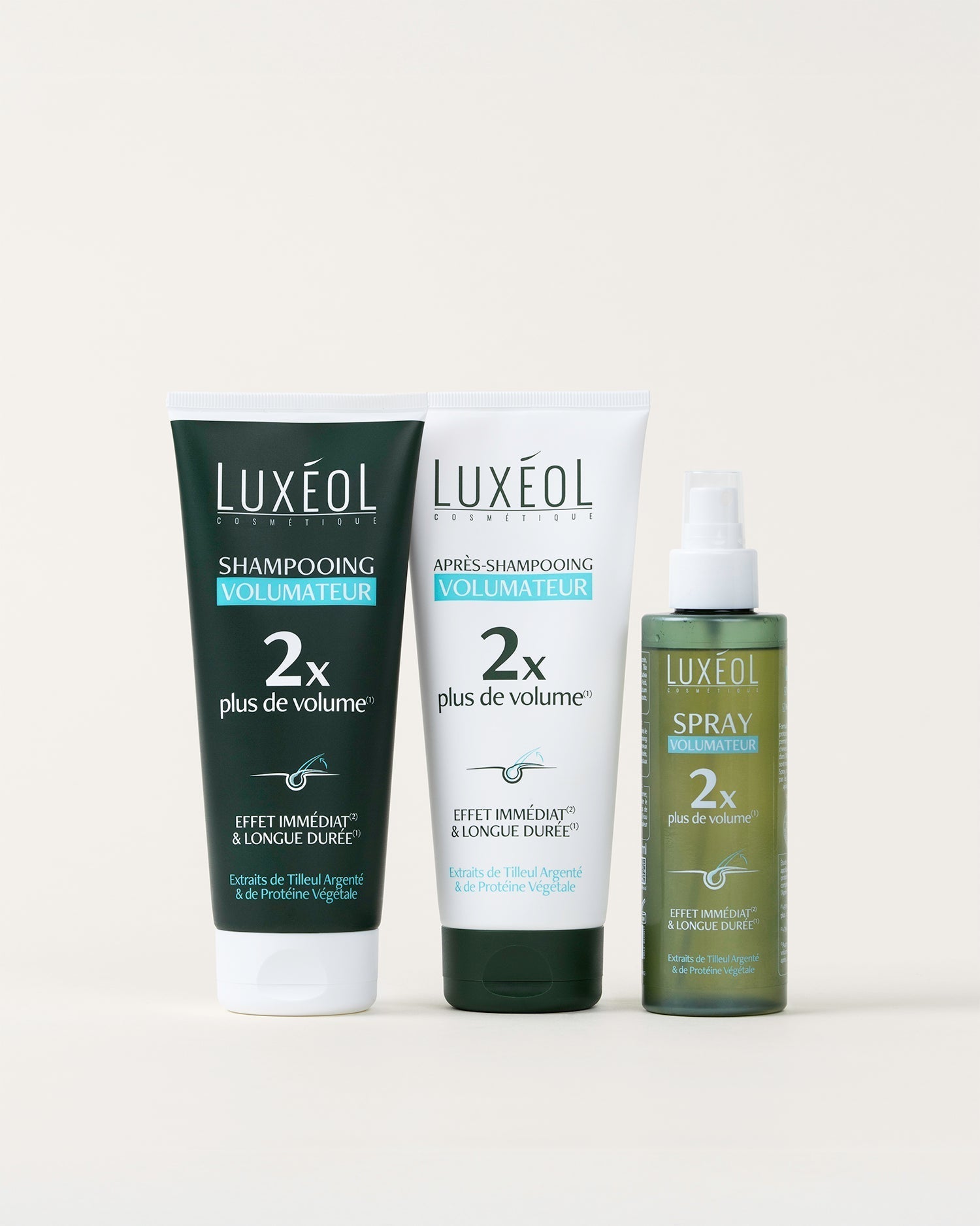 Cette routine complète associe un shampooing, un après-shampooing et un spray volumateur, les formules sont d'origines naturelle et enrichies en glycérine, extrait de protéines végétales et extrait de bourgeon de tilleul argenté.